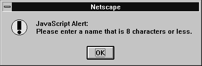 testValue function checks the name entered by a user in the Text object of a form to make sure that it is no more than eight characters in length. This example uses the alert method to prompt the user to enter a valid value.